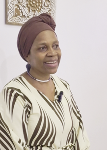 Pamoja hat uns gestärkt. Wenn wir gestärkt sind, können wir alles schaffen. Frauen Sansibars, habt keine Angst; kommt und lernt. Auch mit geringem Einkommen ist es bezahlbar. Ich kam ohne Wissen, aber heute weiß mein Mann, dass ich eine starke Frau bin. Aber wenn du immer nur deinem Mann um etwas bittest, wird er müde von dir werden. Darum: Frauen, bleibt nicht zu Hause – kommt zu Pamoja. Danke.